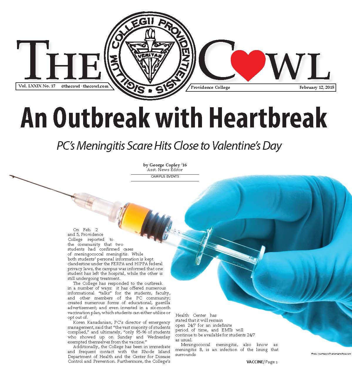 - en An Outbreak with Heartbreak: PC's Meningitis Scare Hits Close to Valentine's Day