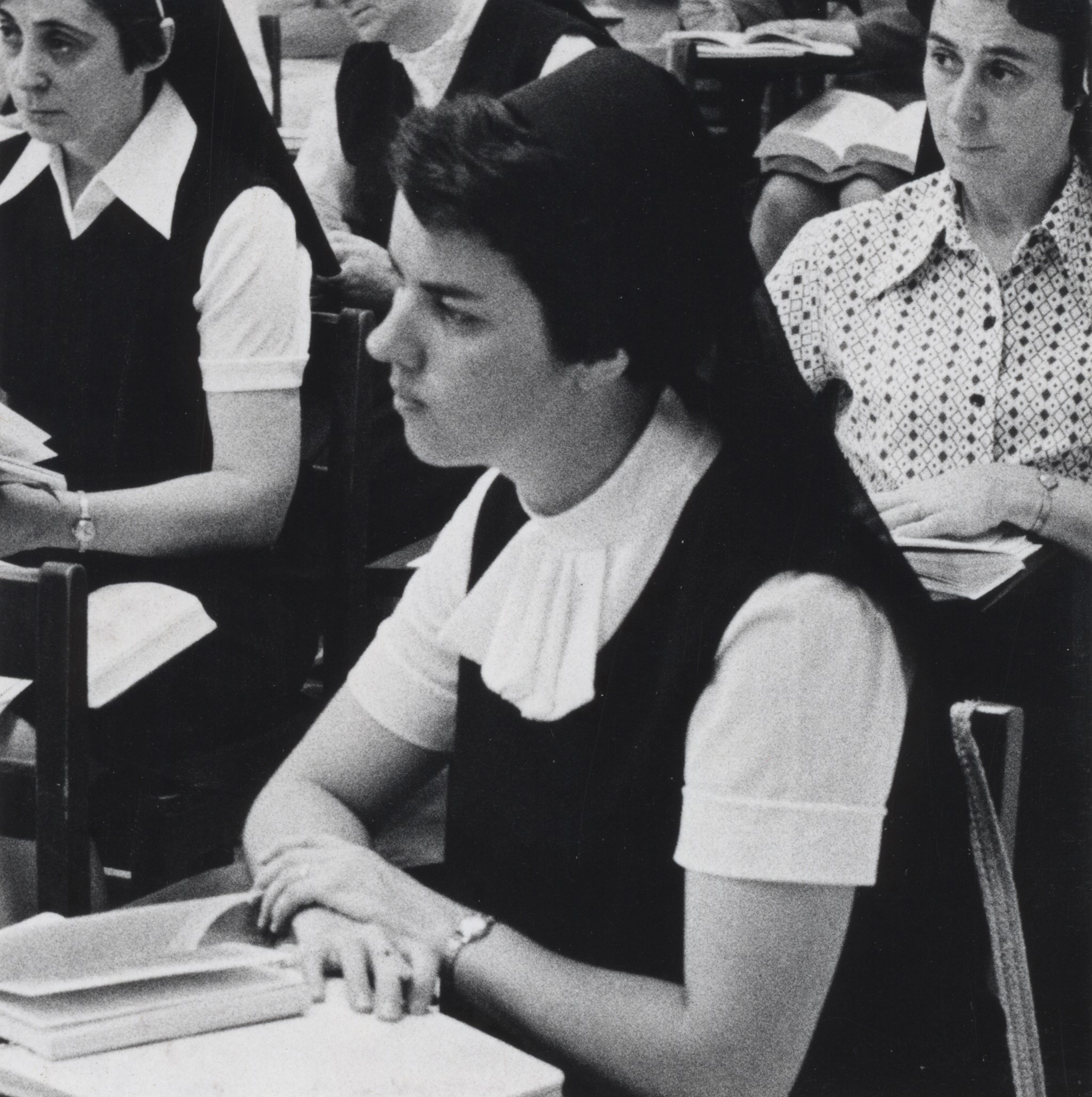 - en Students sit in class during a Summer School of Sacred Theology course at Providence College