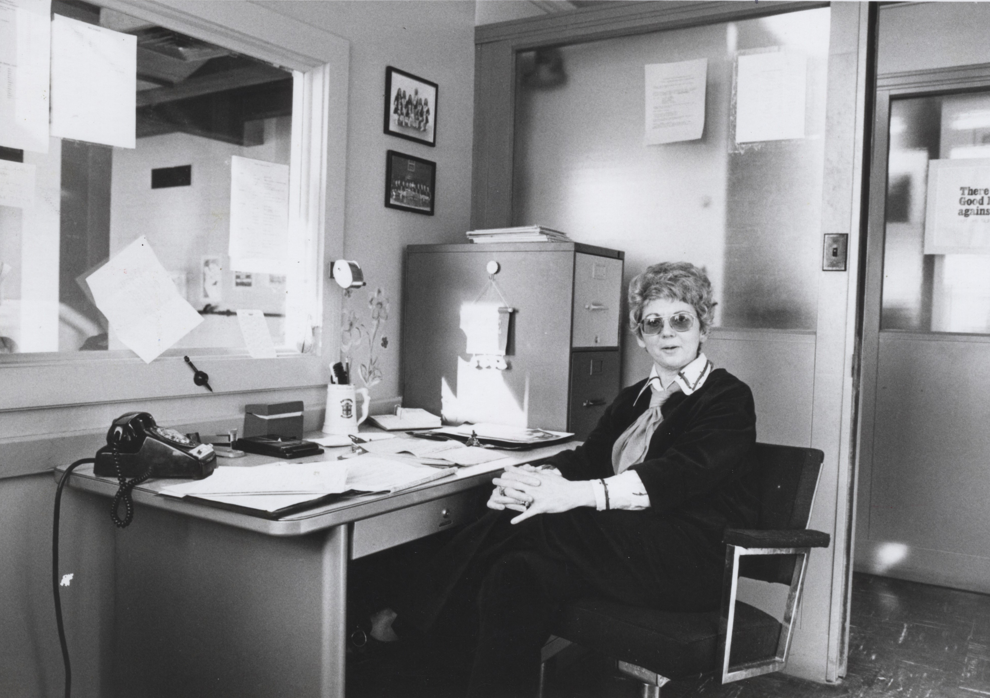 - en Helen Bert sits in her office. Hired as the first Coordinator of Women's Athletics, Bert was promoted to Assistant Athletic Director in 1974. She was elevated to Associate Athletic Director under Lou Lamoriello in 1982. Under Bert's tutelage, 12 Division I varsity women's sports were established as well as the first athletic scholarships given to women's basketball players in 1975.