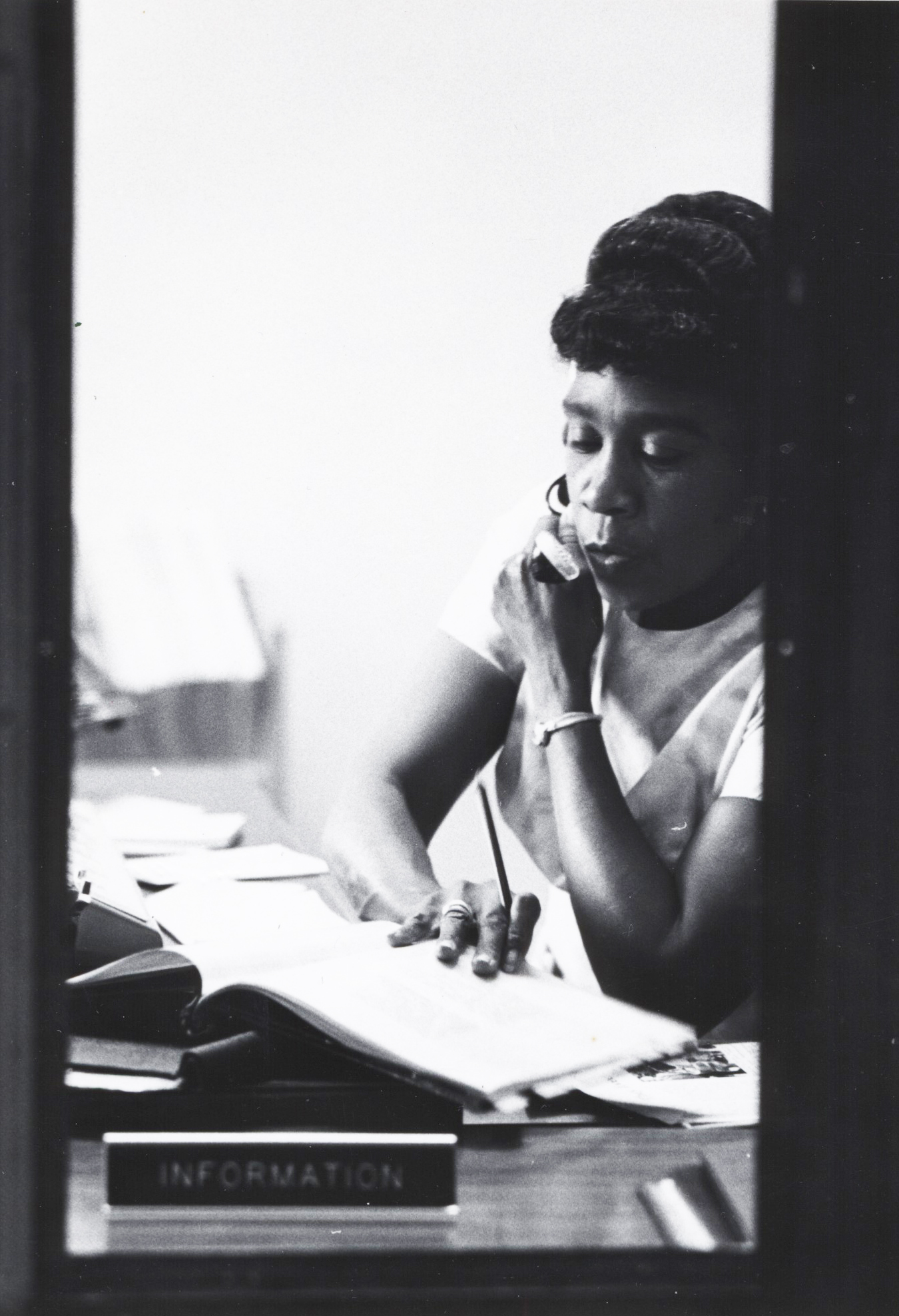 - en Candid image of Providence College telephone operator, O'daylise Collins.