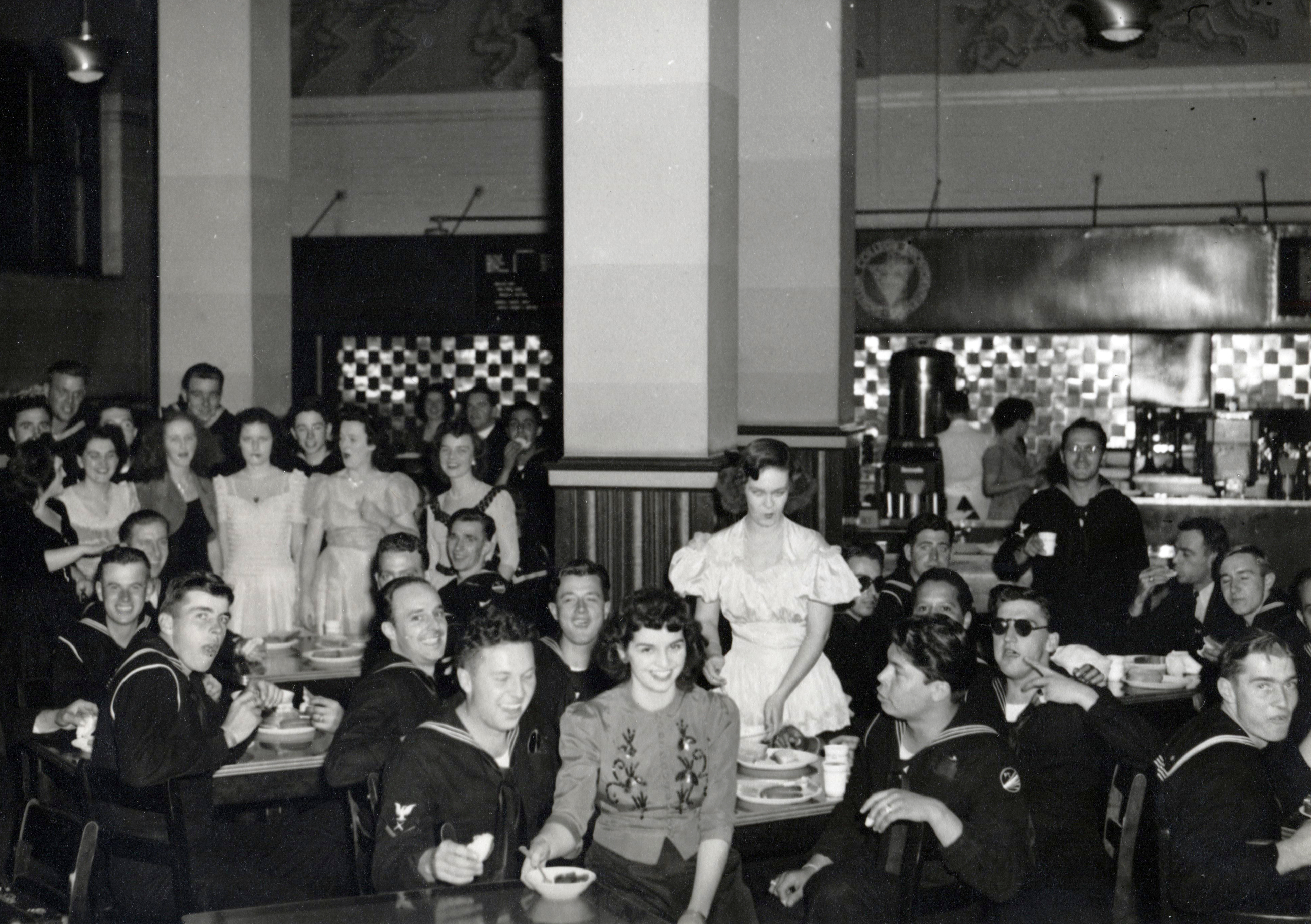 - en Junior Veridames members and military servicemen in the Providence College dining room or cafeteria.