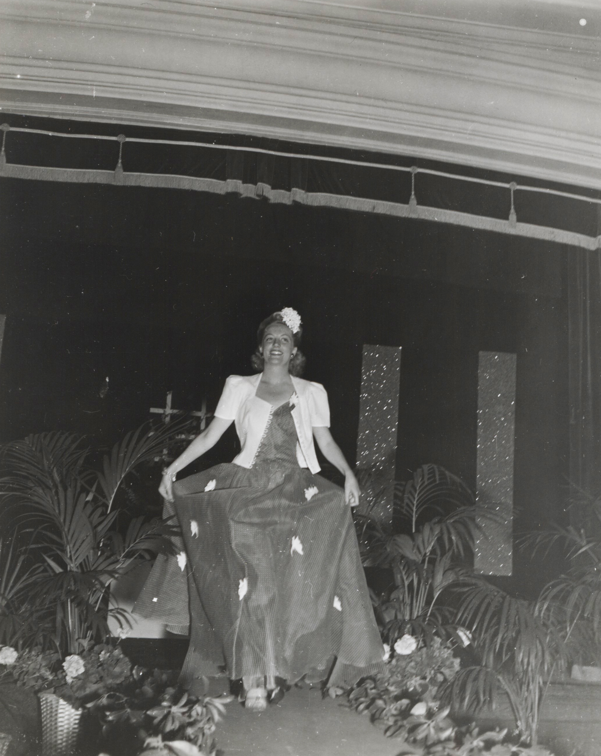 - en Woman walks down the runway at the Veridames annual fashion show fundraiser.